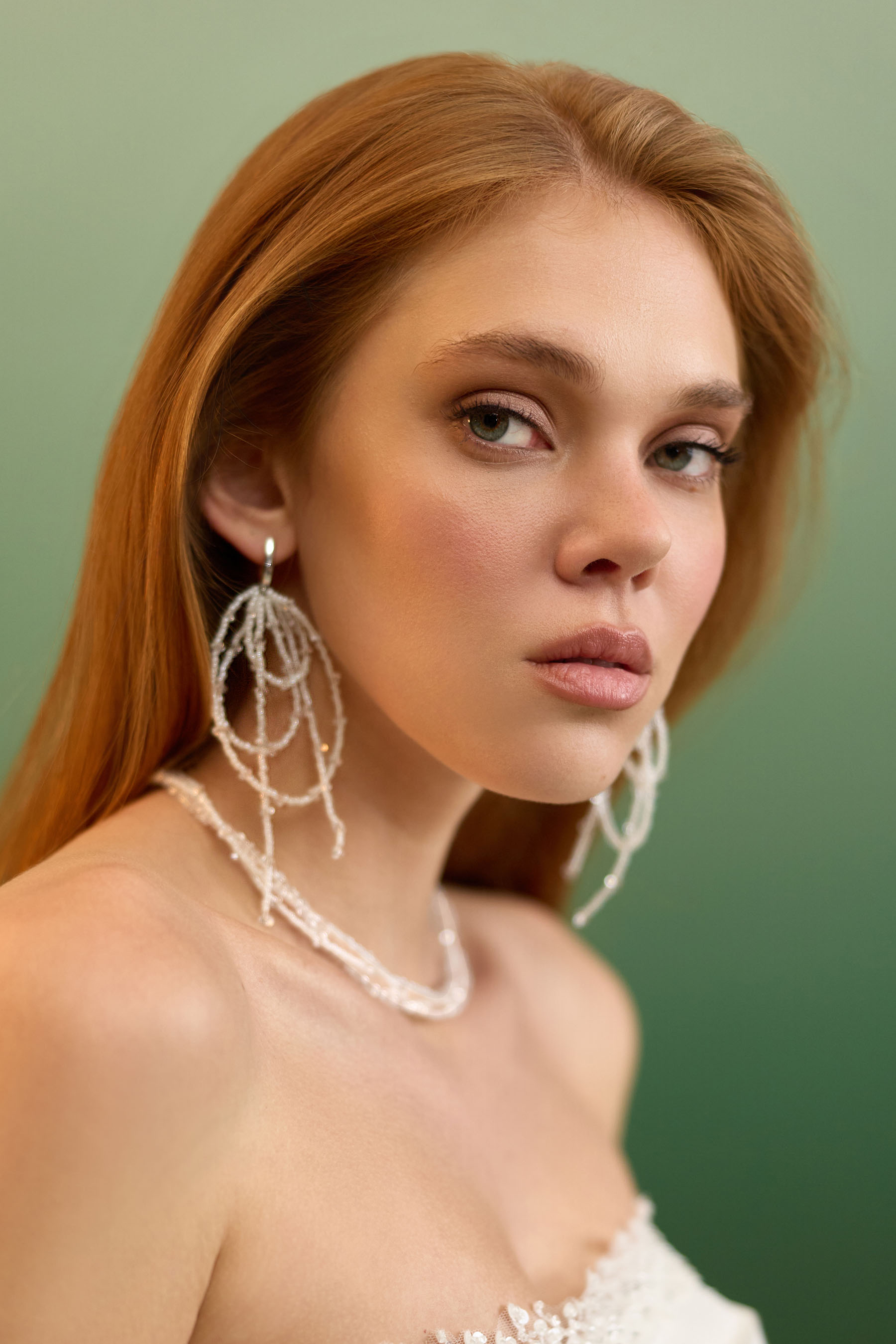 Розкішний комплект, що складається з сережок та намиста, виготовлений із блискучих намистин.